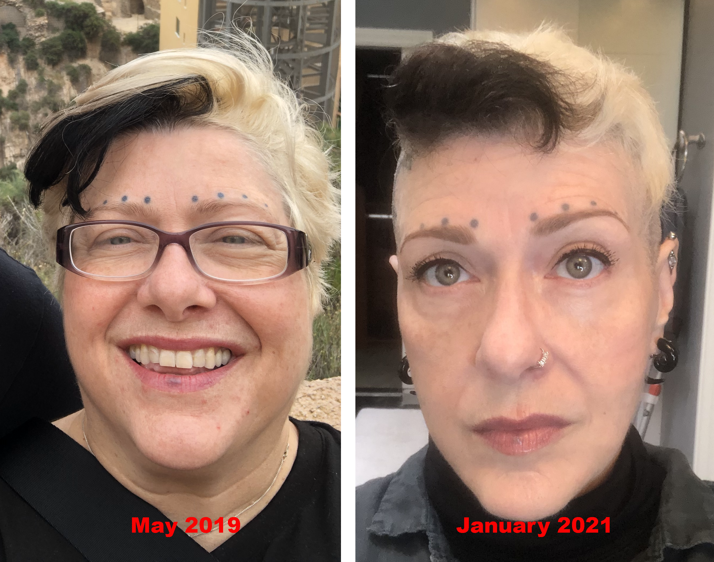 Image of me in May 2019 weighing about 245 and image of me in January 2021 weight 145.