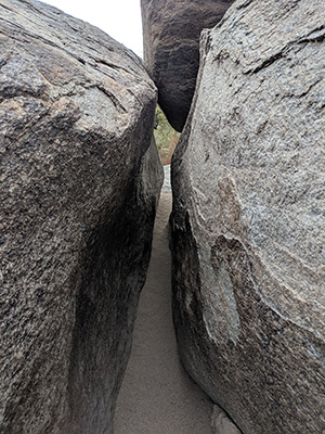 The entire hike was perhaps a mile total (uphill – it was a mountain, after all), but my father’s style of family hiking was to go at a pace comfortable for a 6′ 1″ adult, and yell at the children lagging behind to stop being lazy. If I stopped to rest, the others may or may not stop, and if they stopped, they made their displeasure clear. The irony of being the fat kid getting dragged to Fat Man’s Pass was not lost on me. Fat Man’s Pass was two huge boulders with flat surfaces facing each other about 18″ apart (see the picture above). I felt a secret thrill of pride every time I slithered through the gap. The alternative was Squaw Peak (later renamed Piestewa Peak), the second-highest mountain in Phoenix – a shorter trail, but a tougher climb.