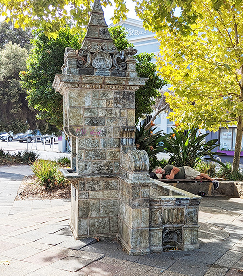 Today is our last stop in Australia. Freemantle is a suburb of Perth, and what we could see of the town from the ship was lovely – a lot of older-looking buildings, a lot of trees and grassy areas. We’d booked a walking tour, and as it started, it was already hot out. Our guide told us about something called the “Freemantle doctor,” which happens when the ground heats up quickly, the hot air rises, and the rising air sucks in a cooling breeze from the ocean to the west. It was probably over 90 when we set out, but by about 11:30, it had cooled down at least 10 degrees and the breeze was refreshingly cool.